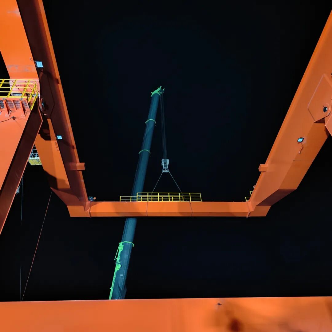 2025年12月11日23時59分,寶雞集裝箱吊安裝項目主梁吊裝作業(yè)順利完成,標(biāo)志著項目建設(shè)取得階段性突破,為后續(xù)施工按下“加速鍵”。